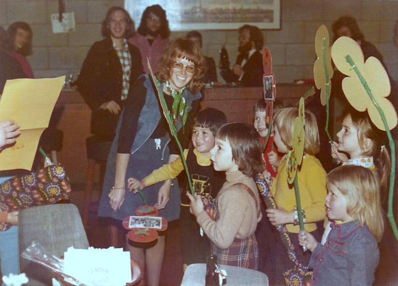 Zij heeft in het kleuterhuis gewerkt als groepsleidster van de Hummels van 1973 tot de sluiting van het huis.