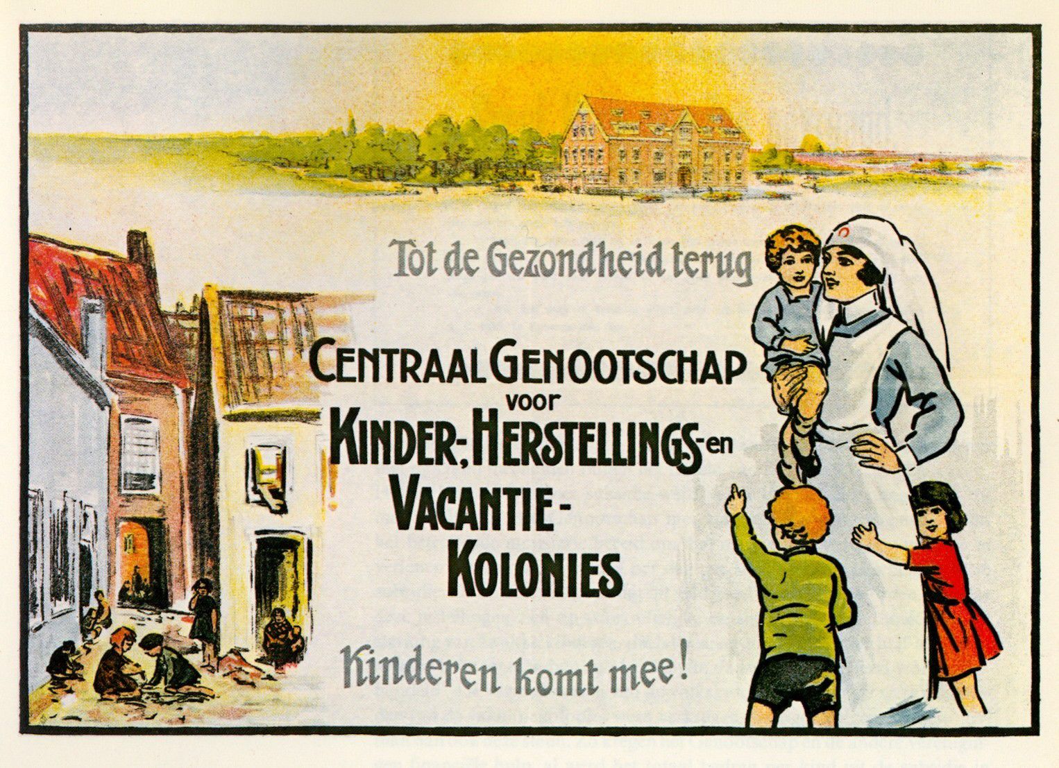 Om plaatselijke initiatieven te verenigen, ontstond in 1901 het Centraal Genootschap voor Kinderherstellings- en Vacantiekolonies. In de beginjaren vond uitzending naar gezondheidskolonies alleen plaats tijdens de zomervakantie – vandaar de volkse naam ‘vakantiekolonie’ – maar na 1920 gebeurde dat het gehele jaar door. Artsen en verpleegsters namen de plaats in van vrijwilligers. Op medisch gezag werd de standaard uitzendperiode verlengd van drie of vier weken naar vijf, later zes weken.