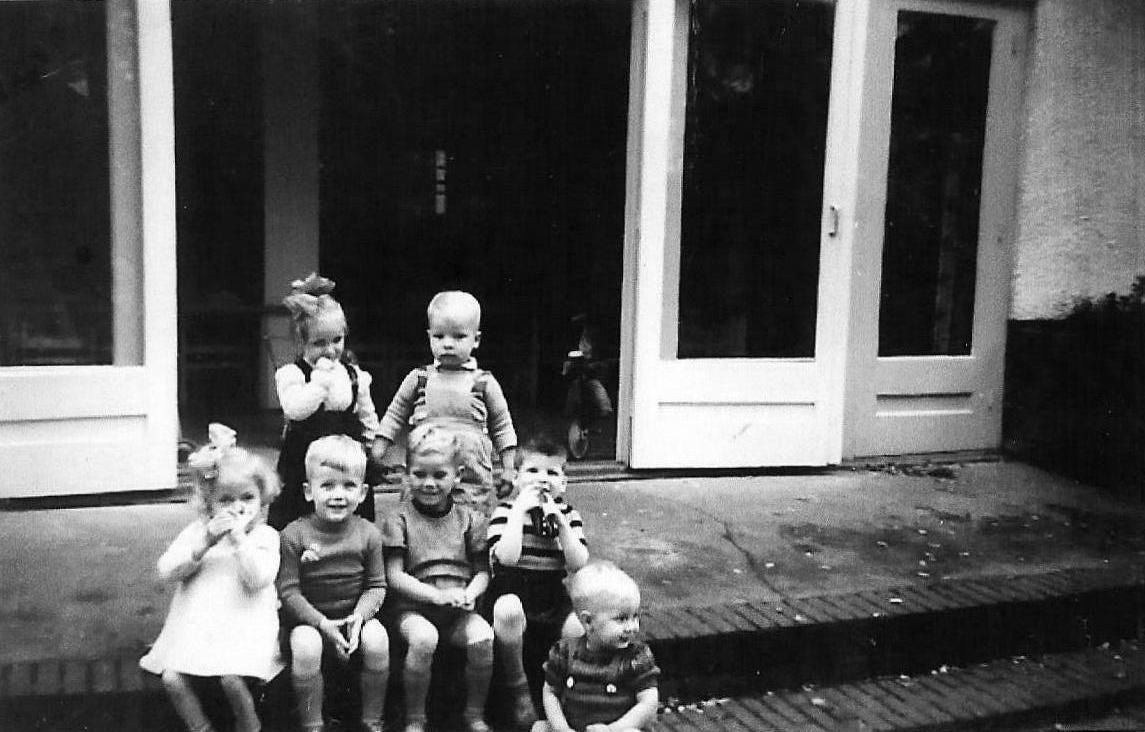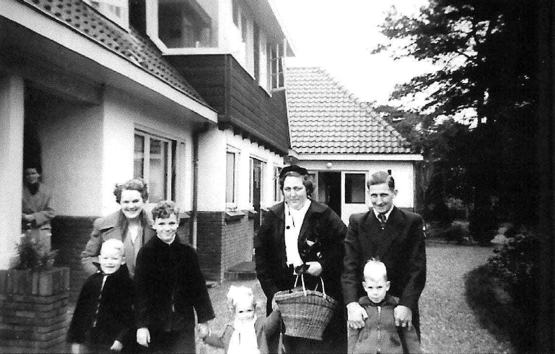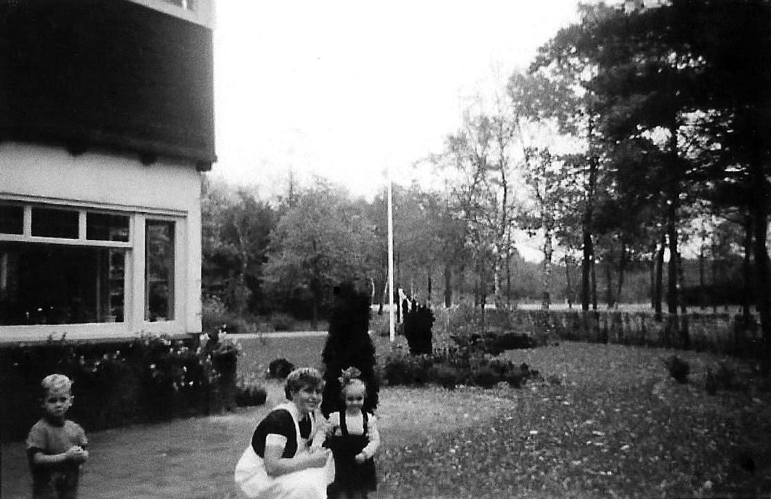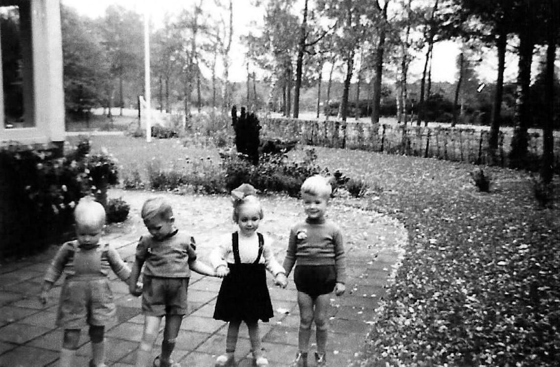 Voor de speelzaal met Bart-Gorry-Marielle en Jacquelien oktober 1954