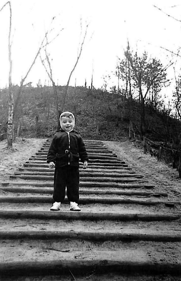 Hansje Heurkens op de trap van de stuifheuvel 8 maart 1954