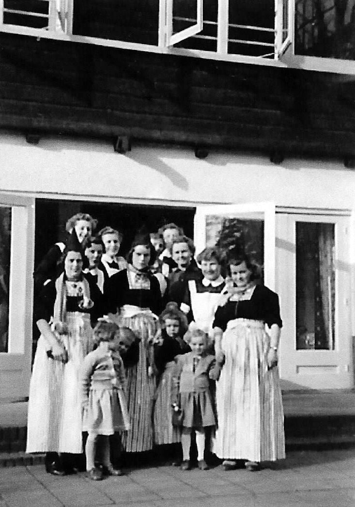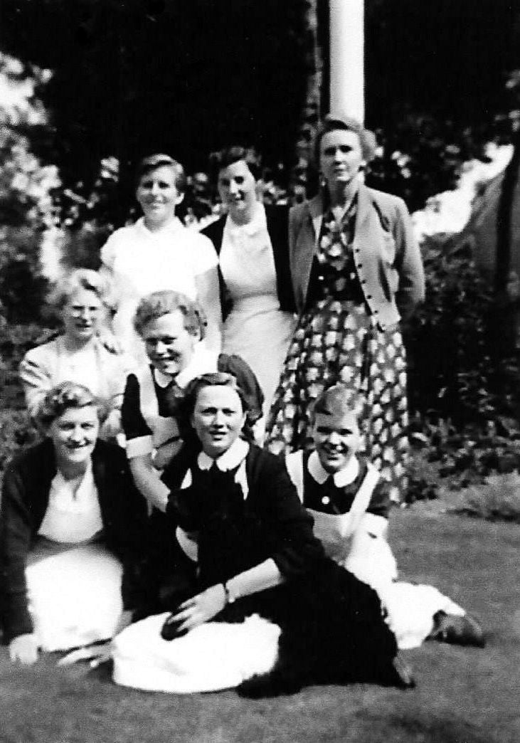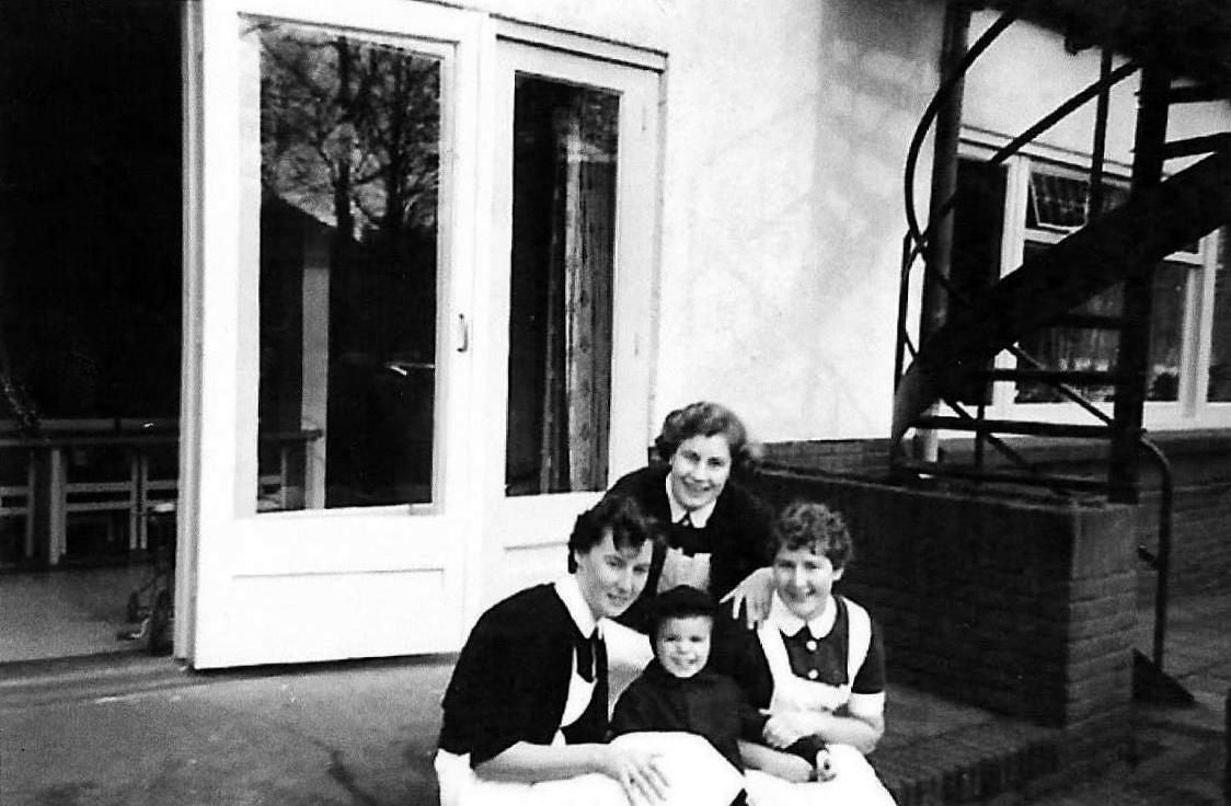 Zuster Jobse- directrice Zr. Matthijssen-Phil Stoopmans-Mieke Hezemans-Ria Langehof-Truus Verwoerd-Cobi Brugmans en Berla van Schie - augustus 1954