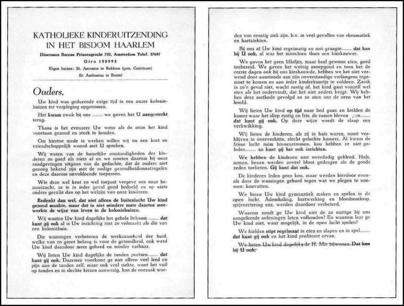 Pamflet dat werd uitgereikt als een kind weer terug naar huis ging.