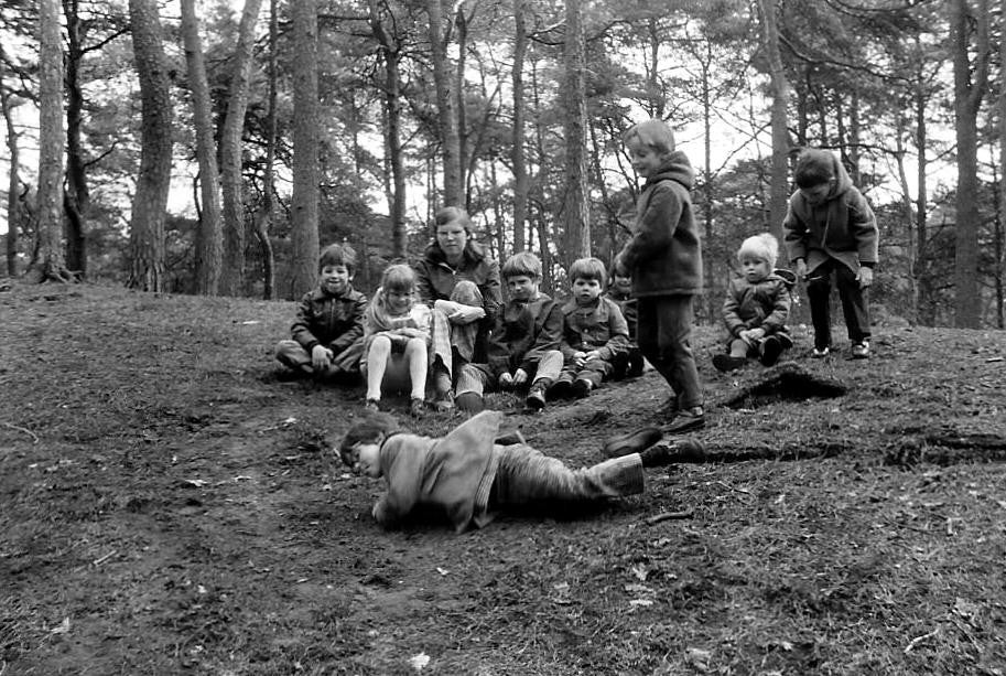 Voordat we naar buiten gingen namen we altijd wel iets mee van brood voor de hertjes,of eendjes. De dieren voeren was feest maar op zondag waren de hertjes vaak zo overvoerd dat ze niets meer wilden eten. Het was echt sneu om dan die beteuterde gezichtjes van de kinderen te zien. Ook liepen we vaak zo maar een eind weg, lekker dwalen door het bos om steeds weer nieuwe dingen en plaatsen te ontdekken. Vooral in de herfst was het bijzonder leuk om het bos in te gaan. Al die blaadjes op de grond vonden ze prachtig, ze renden er doorheen als dollemannen en wisten echt van geen ophouden. We deden ook vaak spelletjes in het bos en we zongen ook allerlei liedjes, te veel om op te noemen. Als je zelf niet begon te zingen dan deden zij het wel! Bijvoorbeeld: